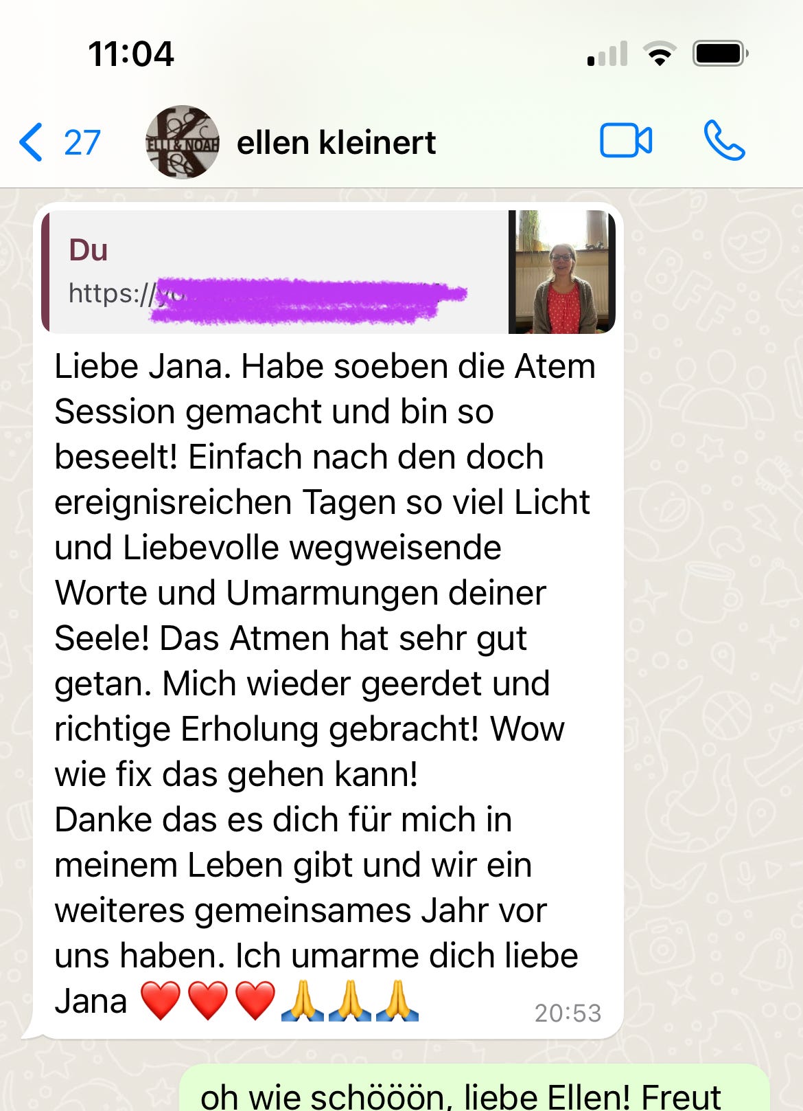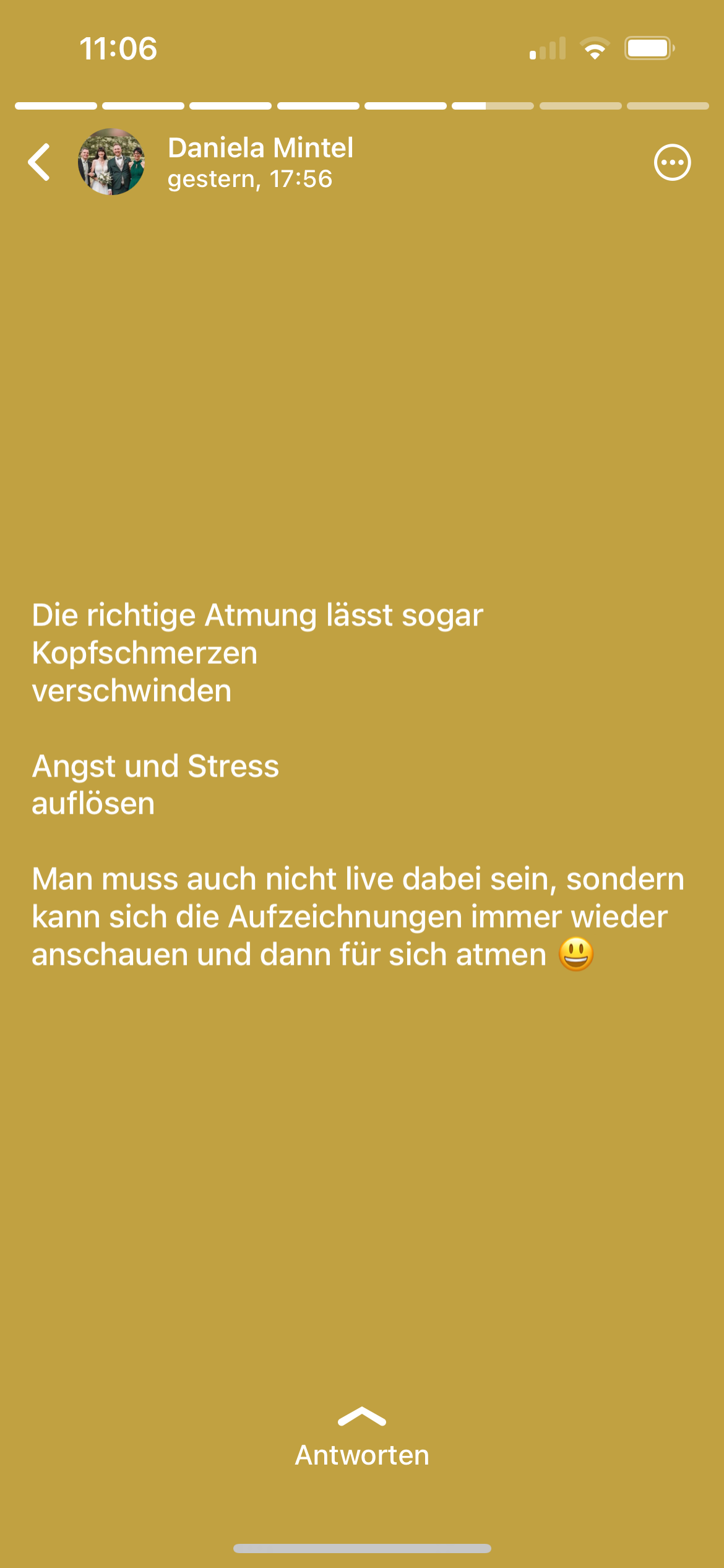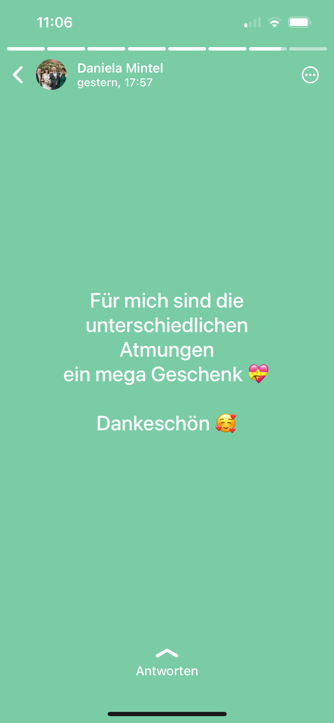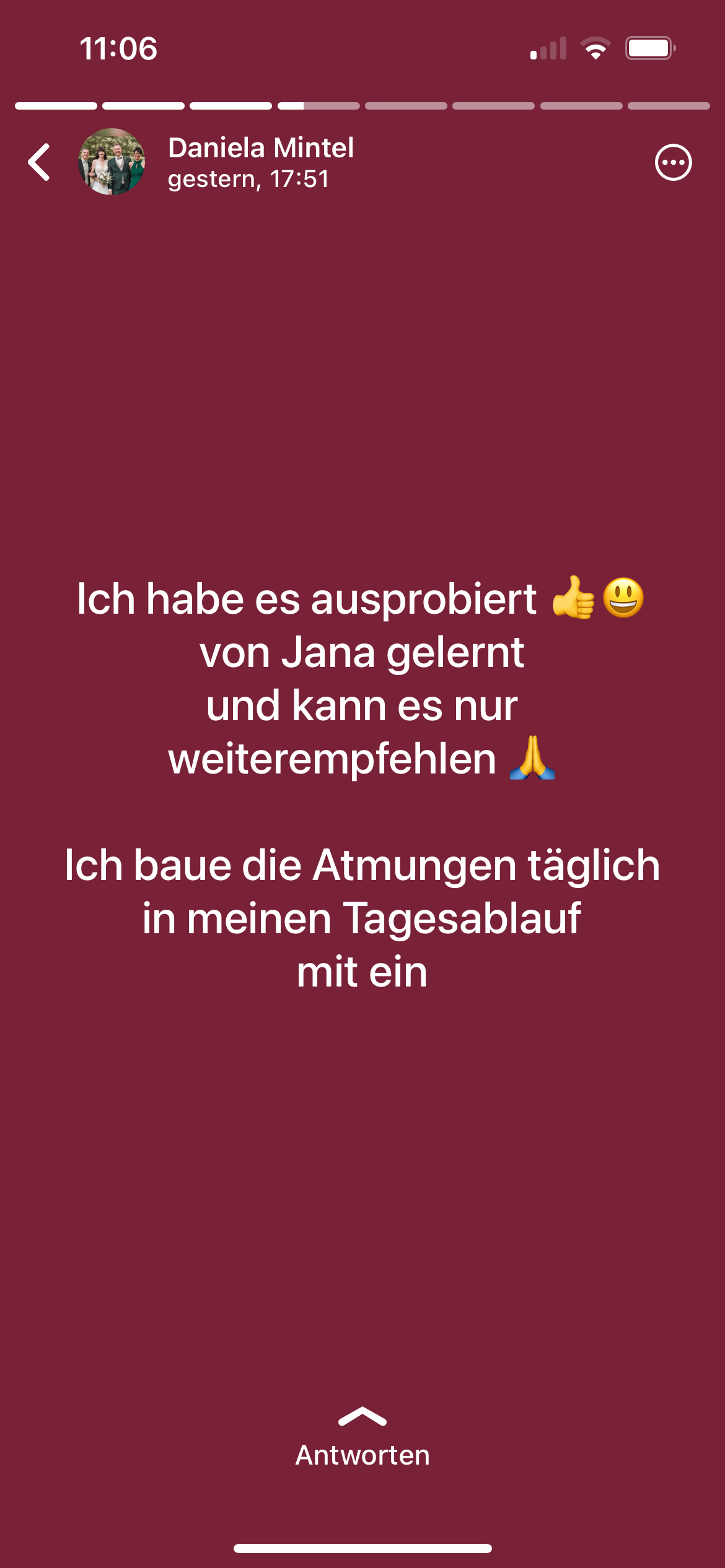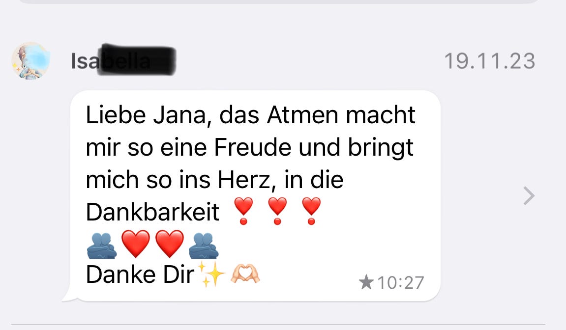 Dankeschön von Herzen, dass ich die Atemtechnik erfahren durfte und mich wieder ein Stück freier fühle.